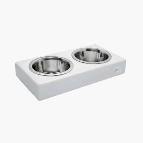 Bring a hint of minimalist design into your apartment with this functional double dog/cat bowl feeder. The dog bowl feeder contains 2 bowls. The non-slip silicone stand make sure the bowls don't move while your pet eats.